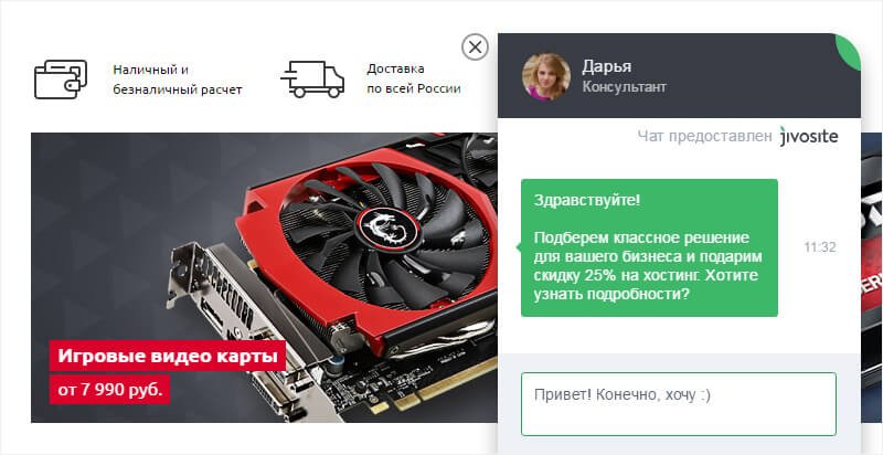 - Есть хотя бы один оператор в сети, чтобы вопрос посетителя не повис в пустоте.
